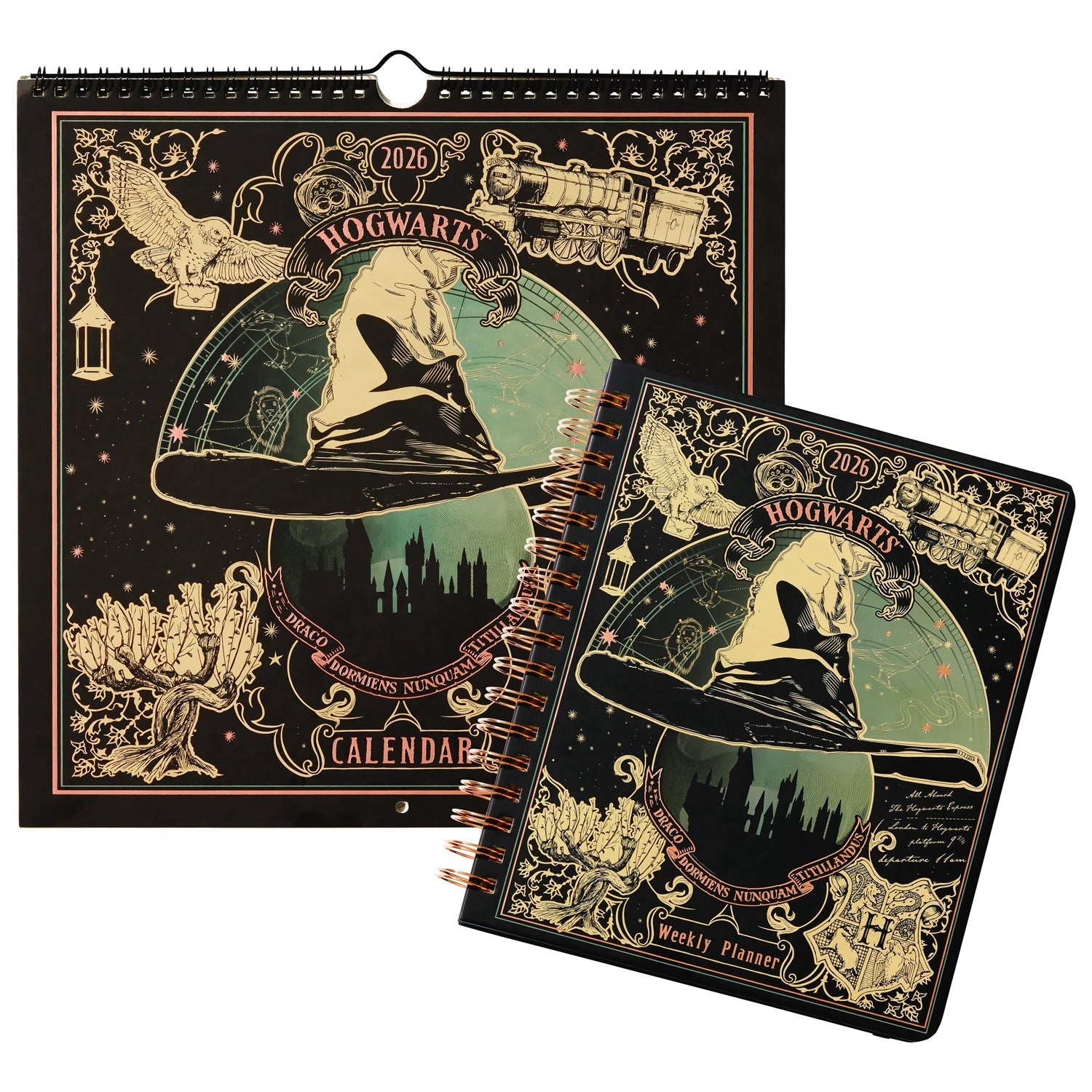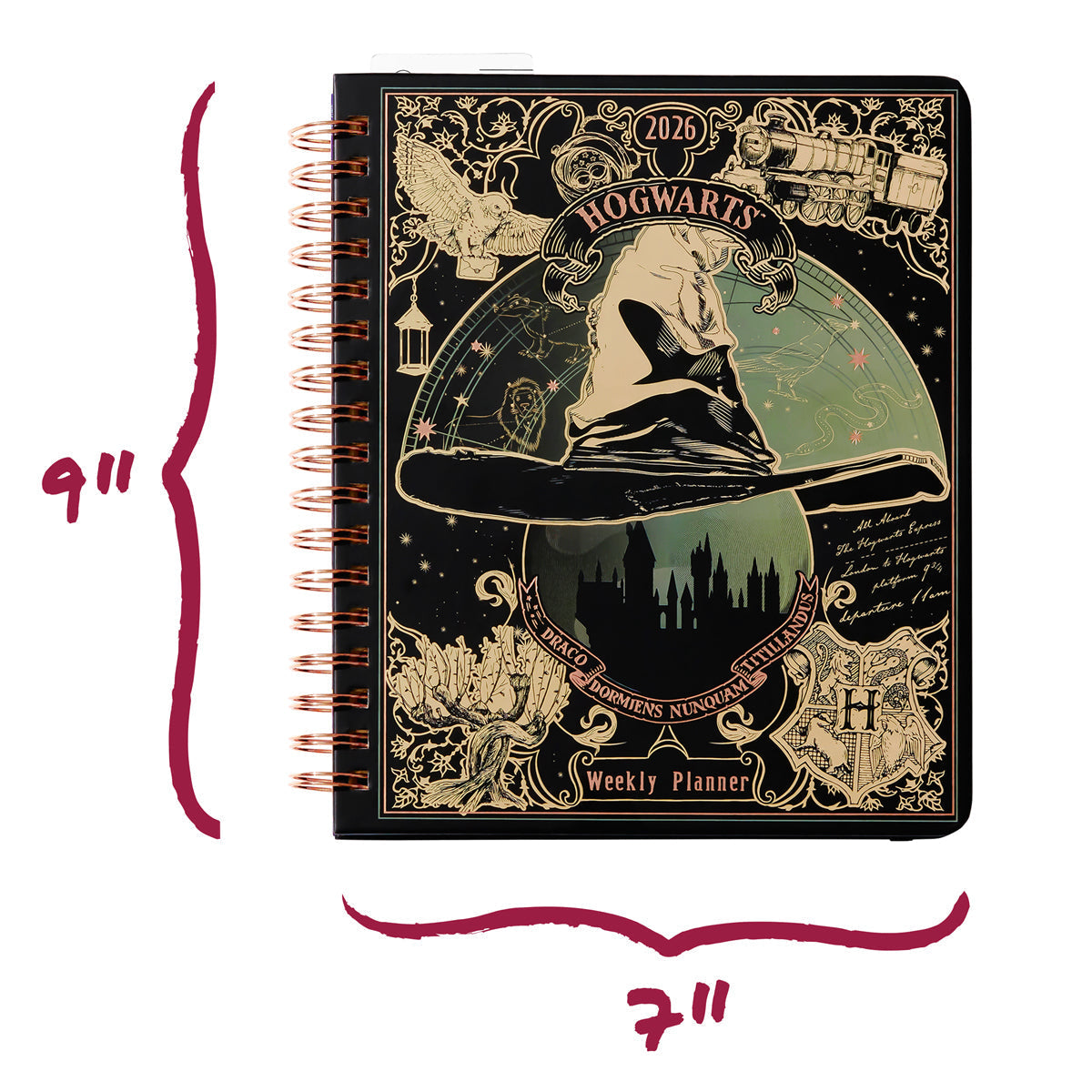 This 7'' x 9'' planner has 164 pages, a hardback cover with foil details, rose gold spiral binding, an elastic strap, a storage pocket, and a ruler bookmark. Whether managing Muggle errands, planning your next trip to Hogsmeade, or simply keeping track of your day-to-day tasks, this 2026 Harry Potter planner is your perfect magical companion! And for even more year-round Wizarding World charm, don't forget to grab the brand-new matching 2026 Wall Calendar and Tabbed Journal!