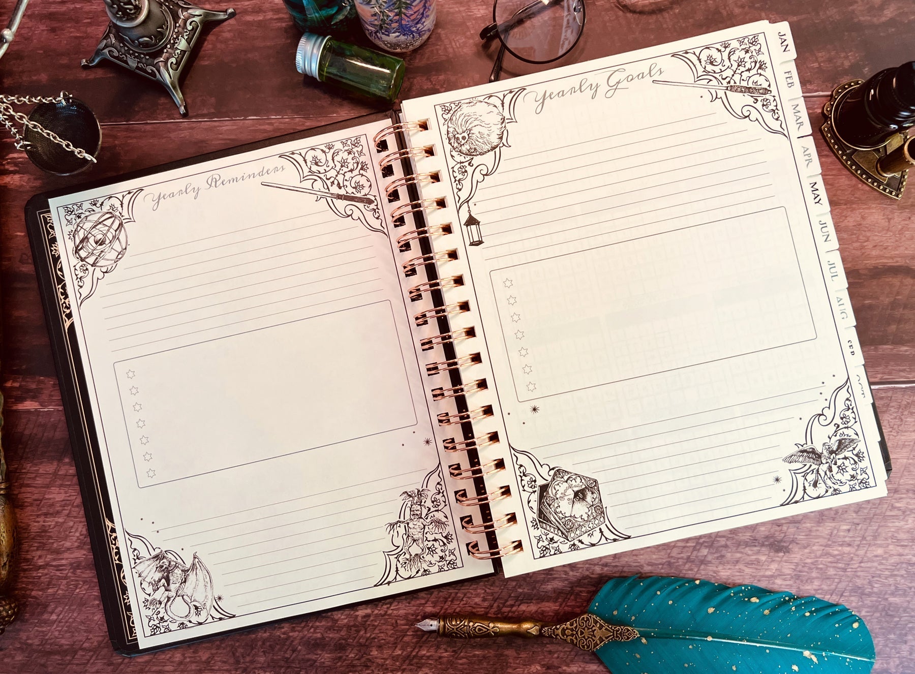 - Features 12 unique, colorable monthly tabbed pages and habit-tracking tools